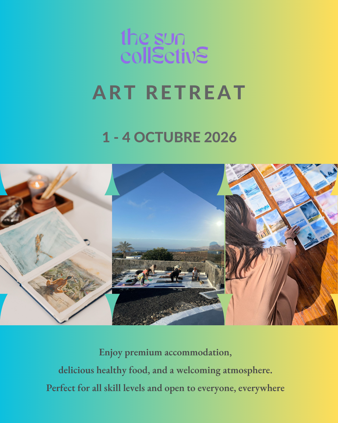 Discover your watercolor skills inspired by volcanoes, beaches, and the Atlantic. Explore the island’s natural colours through chromatic walks, outdoor sketching, yoga, and vibrant painting sessions.